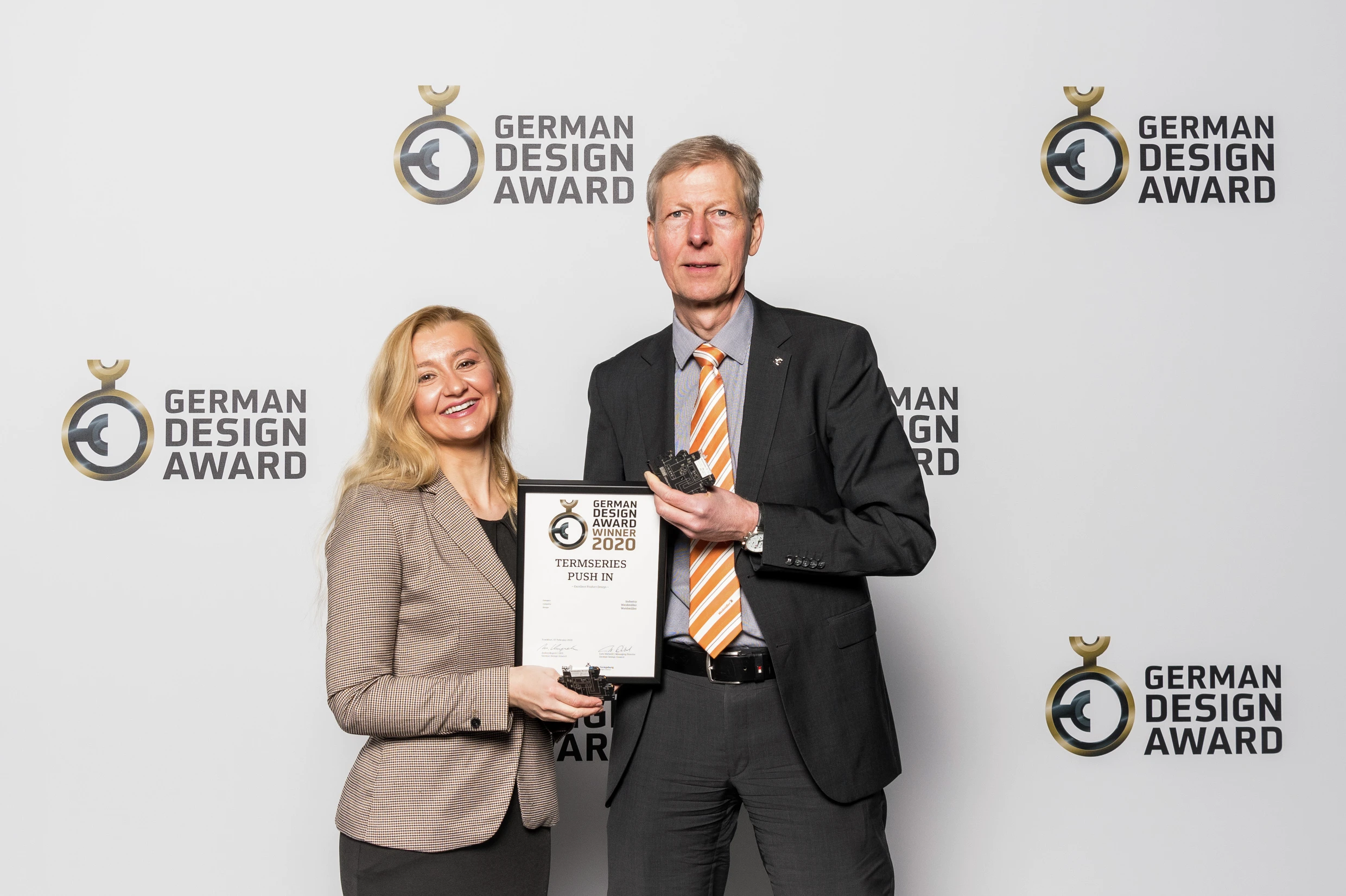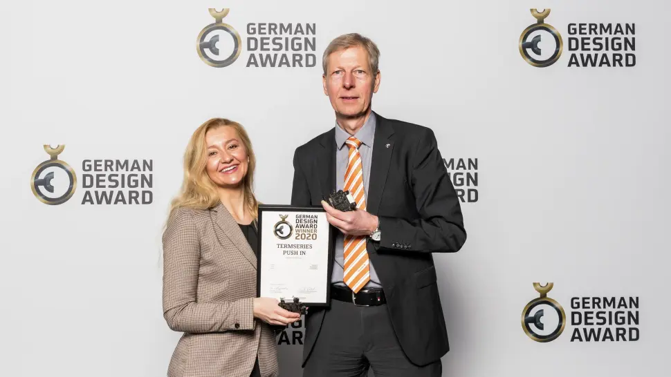 Detmold, 17 February 2020. The Detmold-based electrical engineering firm Weidmüller was honoured with the German Design Award on 7 February in Frankfurt am Main. The German Design Council presented the award for the “PUSH IN TERMSERIES” relay modules in the “Excellent Product Design Industry” category. This relay coupler not only impresses through its functionality and easy handling, but also through its colourful design.